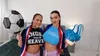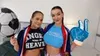 Two hot big tits brunettes soccer fans get fucked