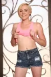Cute blonde teen Miley chomps deeply on a massive cock